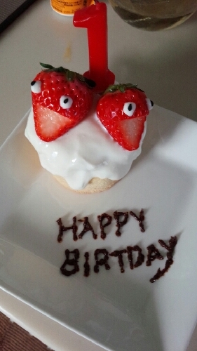 夏生まれ1歳のお祝い 苺はないけど愛情たっぷり簡単手作りバースデーケーキ Sakurasaku